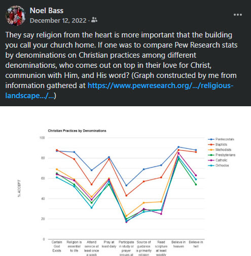 I suspect that, assuming the qualifying standards do not change for the next report, we will see Pentecostalism/ Non-denomination churches remain on top, those under the Baptists umbrella will begin to cave gradually (my prediction come from their recent council to debate on whether to remain tethered to the Nicene Creed as a foundational Christian standard), older protestant traditions will begin to cliff dive, and Catholicism will continue to decline as they have taken to the woke disease. I actually think Orthodoxy has been a rising star in the last 10 years as they have taken a strong stance on catechisms in the US, have no interest in changing their tradition to adopt a woke ideology as a whole, and have received quite a bit of 'marketing', if you will, from high profile celebrities, especially after Covid. Newer branches that have broken off of dying traditions because of doctrinal perversions and laxity will, of course, see quite a bit of growth.